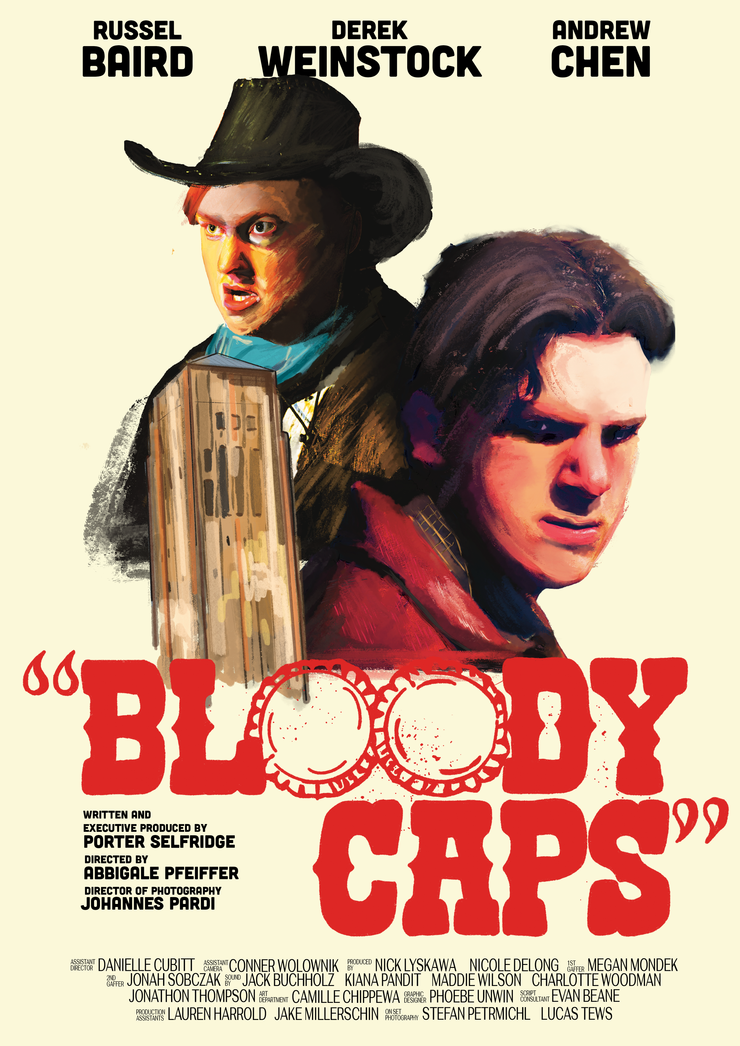 With motives unclear, a mysterious cowboy relentlessly pursues a tormented gunman, driven by pain, sorrow, and two bloody bottle caps.